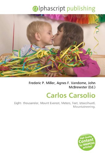 Please note that the content of this book primarily consists of articles available from Wikipedia or other free sources online. Carlos Carsolio Larrea (born October 4, 1962 in Mexico City), is the eldest of seven children, is a Mexican mountain climber. Carsolio is known for being the fourth man (first non-European), and the youngest to climb the world''s 14 eight-thousander (33), including Mount Everest of 8,848 meters (29,029 feet), all of them without supplementary oxygen. His mother, passionate to heights, introduced him to mountaineering adventure. When she was pregnant, climbed IztaccÃhuatl of 5,220 meters (17,159 ft), despite her doctor''s recommendations.