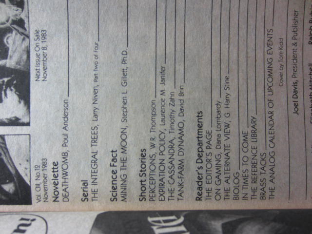 Poul Anderson --- Larry Niven --- W. R. Thompson --- Laurence M. Janifer --- Timithy Zahn --- David Brin