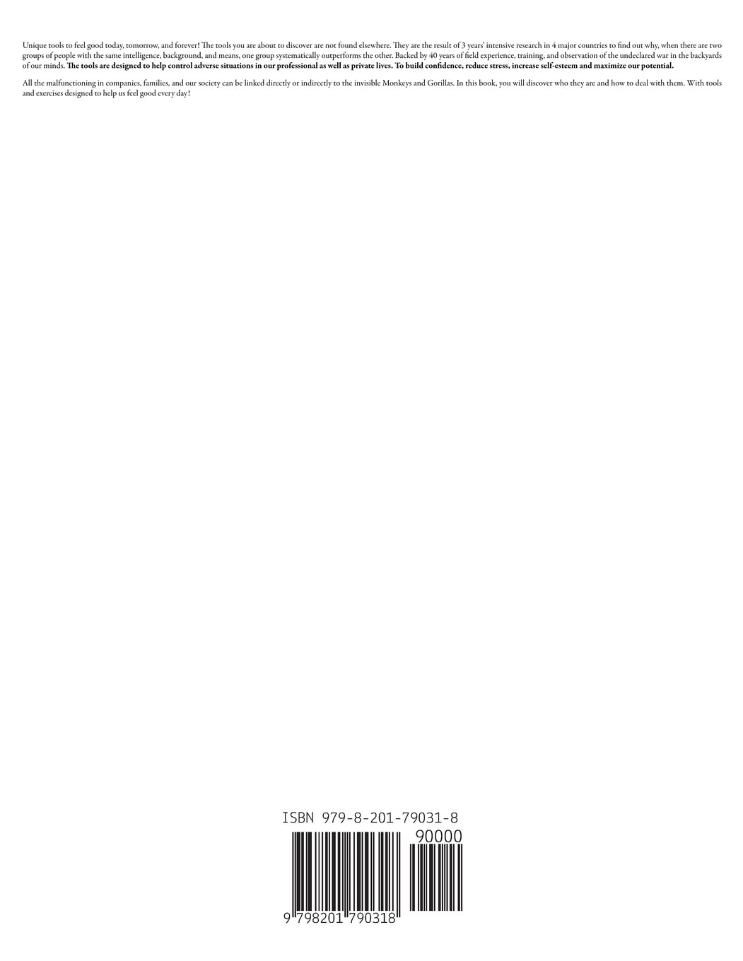 All the malfunctioning in companies, families, and our society can be linked directly or indirectly to the invisible Monkeys and Gorillas. In this book, you will discover who they are and how to deal with them. With tools and exercises designed to help us feel good every day!