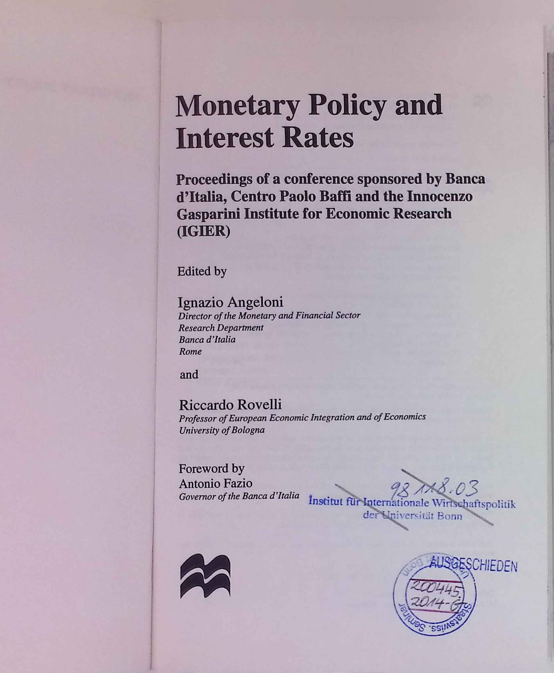 Monetary Policy and Interest Rates: Proceedings of a Conference Sponsored by Banca D'Italia, Centro Paolo Baffi and the Innocenzo Gasparini Institute for Economic Research (Igier)