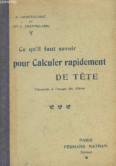 CE QU'IL FAUT SAVOIR POUR CALCULER RAPIDEMENT DE TETE - FASCICULE A L'USAGE DES ELEVES.