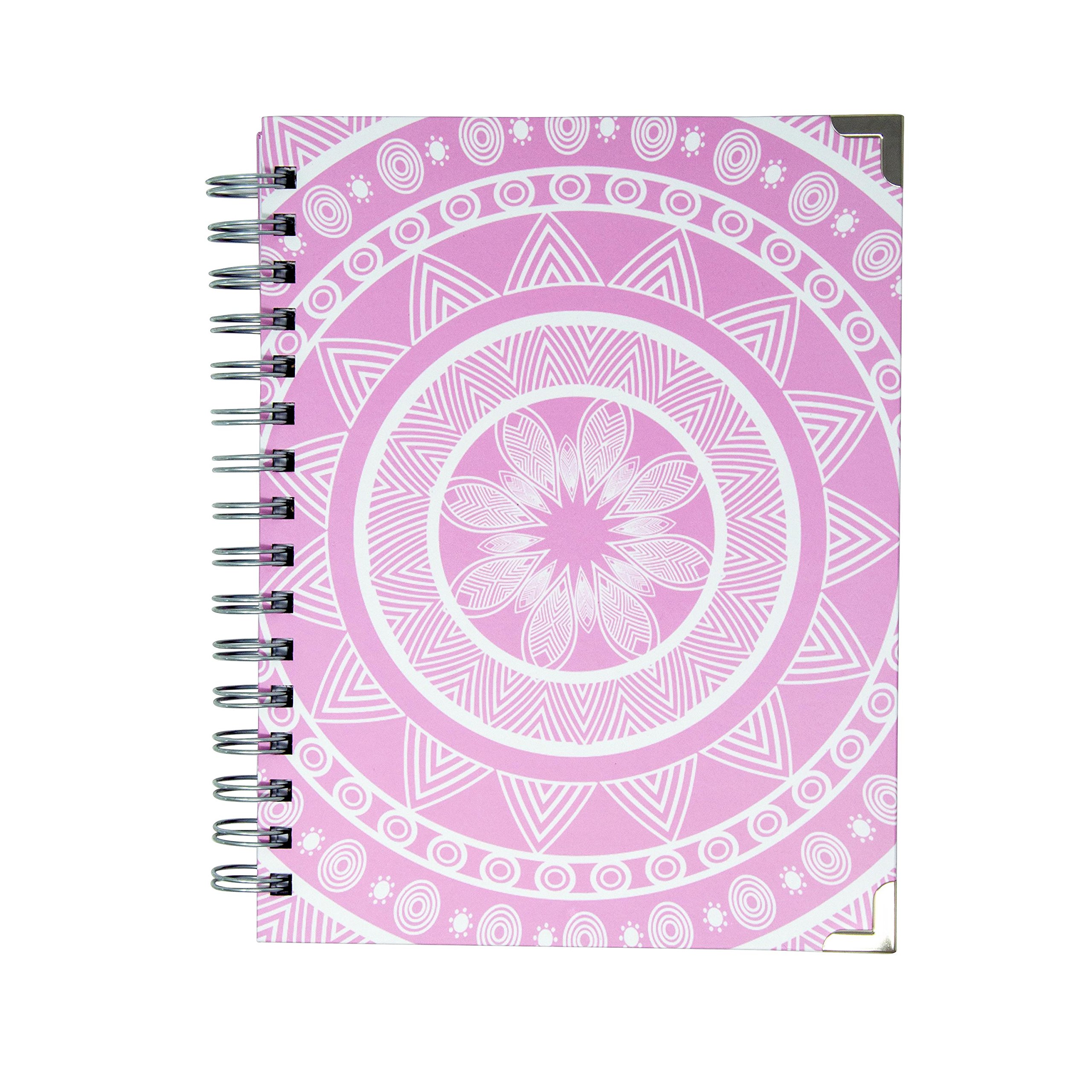 Spiral Bound Hardcover Writing Journal Notebook, Pink Mandala Diary, Lined and Blank Pages, 100 gsm, 6.5 x 8.5 inches